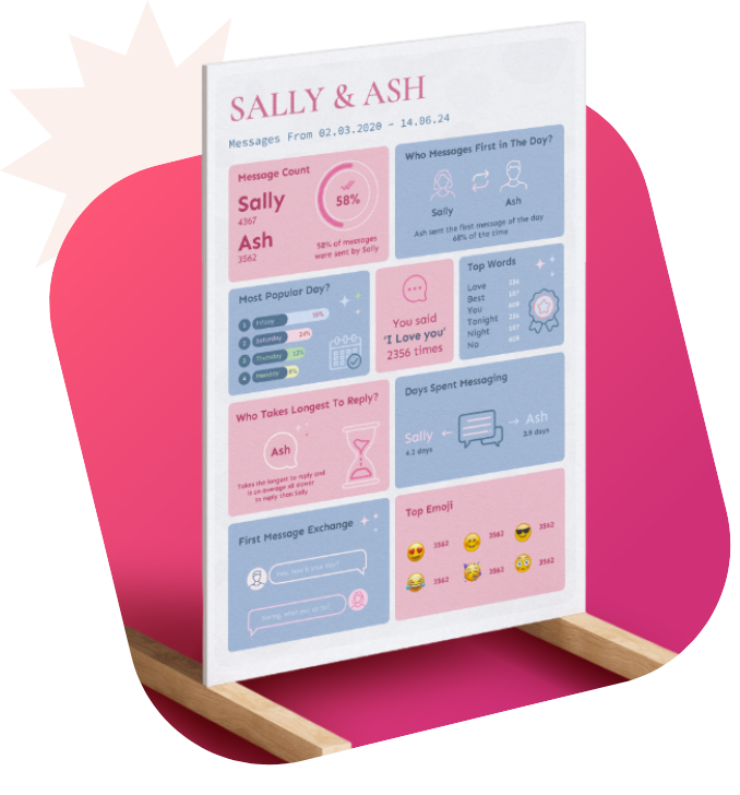 Chat Trends pulls out interesting stats from your Whatsapp or Instagram conversations. It then places the data into a cute poster design.